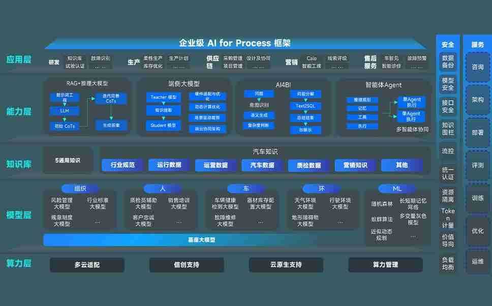 端到端的一站式AI工作空间深度融合了从企业战略规划到日常经营的全流程业务板块,,,,定向解决车企内部领域多、、、、部门多、、、链条长、、场景碎片化等难题,,支持车企快速构建以AI为核心的生产力写作体系,,,,实现任务执行与AI能力的无缝集成与交互